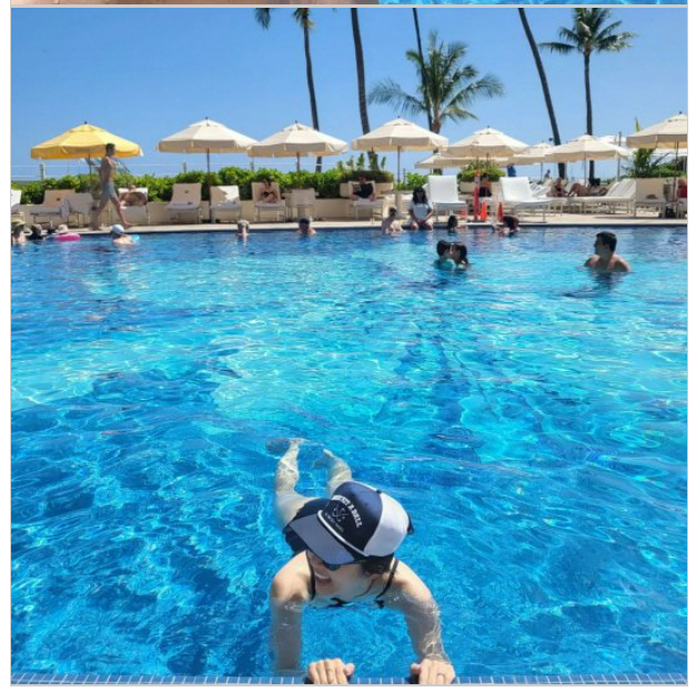 손담비는 눈을 빛내주는 환한 미소로 호텔 야외 수영장에서 수영을 했다. 한편,