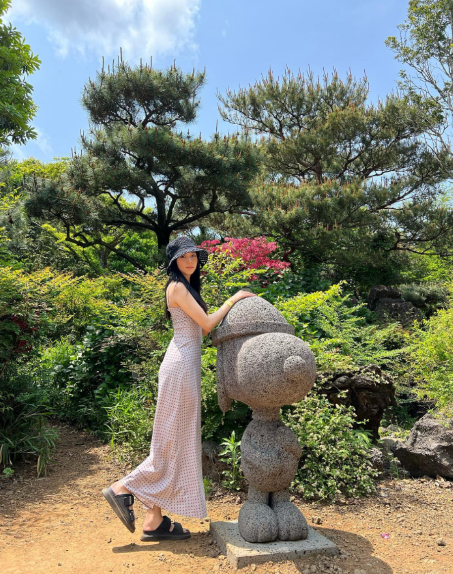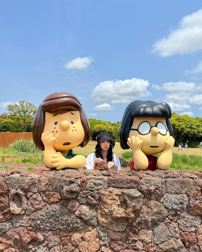 지수 공식 인스타그램 “햇빛은 쨍쨍하고 스누피는 귀여웠다.”라는 코멘트와 함께 올라온 지수의 제주 여행 사진. 목적지는 구좌에 위치한 제주 스누피 가든이었어.