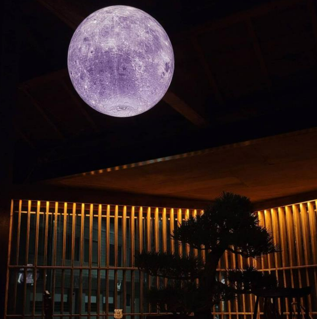 저녁엔 천장의 달 조명이 은은하게 카페 내부를 밝혀줍니다. 이곳의 대표 메뉴는 '말차가배'예요. 진한 말차원액과 커피, 그리고 그 위에 경단까지 올라가 음료로 디저트처럼 먹을 수 있는 메뉴입니다.