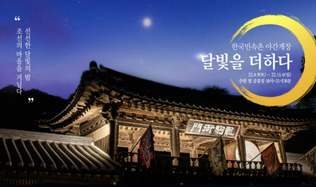 11월까지 주말마다 운영되는 용인 한국민속촌 야간개장을 방문해 보자. 민속촌 야경을 배경으로 포토존이 곳곳에 마련돼 있으며, 야간개장 기간동안 밤 8시 공연장에서는 조선 시대 남녀 이야기를 다룬 특별 공연이 펼쳐진다. 시간을 놓쳤다면 초가집 곳곳 창에 드리워진 그림자로 조선의 밤 생활상을 들려주는 그림자 이야기극을 노려보자. 장터에서 삽겹살을 즉석에서 구워 판매하거나, 다양한 야시장 음식도 준비돼있다고 하니 동동주 한 잔 걸치며 조선 사람에 빙의해보는 것도 좋을 듯 하다.
