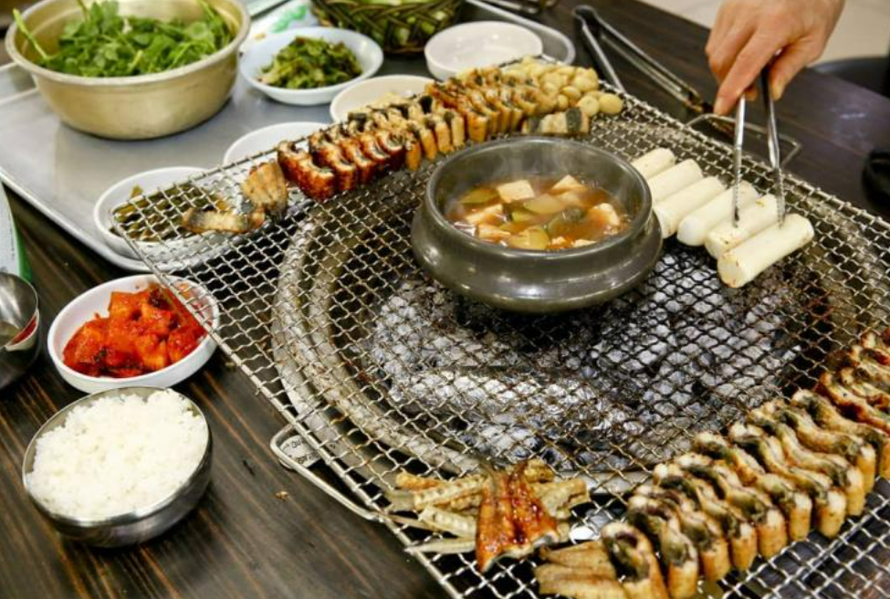 노릇노릇 잘 구워진 장어 요리로 몸보신 어떠세요? 양평의 한강민물장어는 장어구이로 유명한 맛집이에요. 얼핏 보기에도 실하고, 통통한 장어구이는 겉은 바삭하면서도 속은 촉촉해 입에 넣는 순간 사르르 녹아버린답니다. 여기에 식당 측에서 직접 재배한 신선한 미나리와 상추를 곁들여 먹으면 느끼함 없이 산뜻하게 장어요리를 맛볼 수 있어요. 숯불에 구워 먹는 가래떡과 소시지, 장어뼈도 별미!, 장어뼈의 경우 고소하면서도 오독오독 씹는 맛이 있다고 하니 한번 맛보시길! 이를 비롯해 장어뼈까지 푹 고아 만든 장어지리탕에, 구수한 시골 된장으로 푹 끓인 된장찌개도 인기 메뉴. 단체 예약도 가능한 데다, 아기 의자도 있어 아이부터 어른까지 함께 든든하게 몸보신하기 좋을 듯. 다만, 예약은 방문 전날까지 가능하며 당일 예약은 어렵다고 하니 참고하세요!