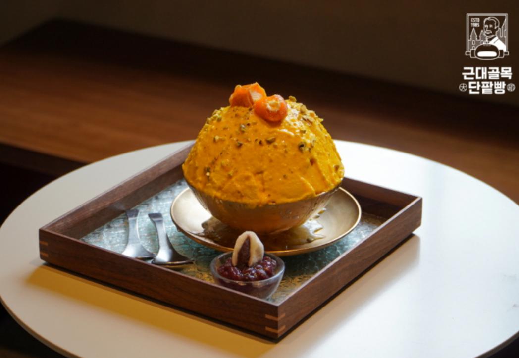 근대골목단팥빵은 신메뉴 '단호박 빙수'를 선보였다. 얼음 표면에 단호박 크림을 바르고 꿀, 피스타치오 등을 토핑으로 더했다. 빙수 속도 단호박 크림으로 채웠다. 샛노란 빙수 위에는 주황빛 곶감을 올려 식감을 살렸다.