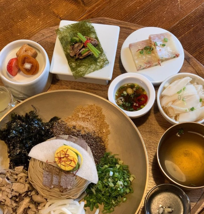 이렇게 정성을 들인 서관면옥에서  먹어봐야  메뉴 서관면상입니다. 1 20 한정으로 제공하는데, 점심시간에만 먹을  있습니다. 서관면상은 조선 시대 반상 문화  하나인  반상을 재현한 것인데요. 평양냉면과 선식, 수육, 계절 음식 등으로 차립니다. 소고기와 돼지고기의 고명이 어우러져 육수와 함께 진한 육향을 즐길  있는 맛박이냉면 추천하니, 취향에 따라 주문하세요. 주소 서울시 서초구 서초대로56 11