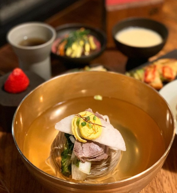 색다른 평양냉면을 원한다면, 추천하고 싶은 우주옥입니다. 연남동에 있는 우주옥은 ‘소 우’에 ‘술 주’ 자를 써서 소고기와 술이 있는 집을 의미하는데요. 그 때문인지 주류 주문이 필수인 주점인 것을 고려해 방문하는 게 좋습니다. 평양냉면계의 이단이라 자칭하는 이곳의 특징은 고명으로 얹힌 샤퀴테리 그리고 소금 베이스와 간장 베이스 두 가지 중 선택할 수 있다는 점인데요. 소금 베이스로 만든 냉면 청은 국물이 상당히 맑고 담백한 맛입니다. 간장 베이스인 냉면 진은 살짝 탁한 육수로 간장이 가진 단맛의 향을 느낄 수 있어요.