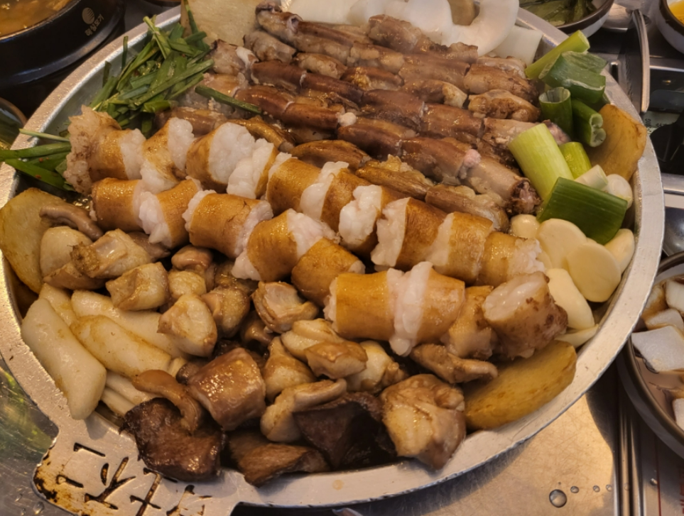 한우곱창 본연의 맛이 잘 느껴지는 맛집, 백두한우곱창입니다. 깔끔한 국물의 선지국이 기본 안주로 제공되는데요. 속이 뜨끈뜨끈 데워질 때 큼지막하게 실한 비주얼의 곱창을 만나볼 수 있습니다. 곱창 주위로 마늘, 파, 부추, 양파, 감자의 다양한 야채가 둘러싸여 있습니다. 하나씩 싸서 곱창과 한 입 드셔보세요.