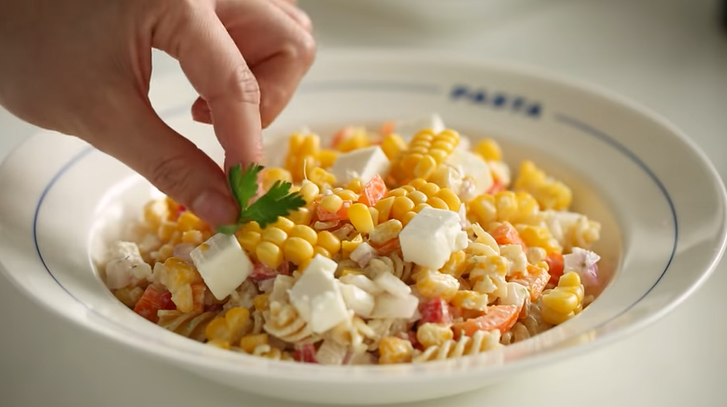 더위로 잃은 입맛을 찾아 줄 레시피! 아삭한 초당 옥수수 마리네이드로 간편하게 만드는 냉 파스타다.