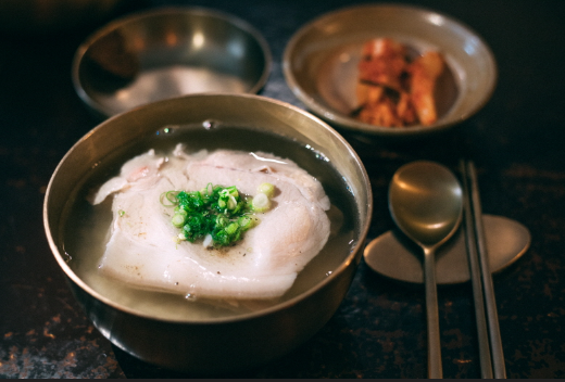 맛의 비결은 돼지에 있다. 지리산 자락 남원에서 기른 흑돼지 버크셔K(영국 버크셔 지방에서 나는 흑돼지를 우리나라 기후와 품질에 맞게 개량한 품종)를 사용해 맑고 깊은 국물을 우려낸다. 버크셔K는 육질이 탄력 있고 잡내가 적은 것이 특징이라 곰탕으로 끓이기에 제격이다. 주문이 들어가면 뜨끈하게 데워진 유기그릇에 밥알을 토렴해 내어 준다. 밥이 질지 않아 입 안에서 밥알이 하나하나 느껴진다. 돼지국밥의 든든하고 진득한 맛과는 전혀 다르다. 좀 더 상쾌하고 가볍다. 소고기뭇국의 경쾌한 넘김, 은은한 감칠맛, 입 안에서 휘휘 도는 밥알, 너무 시다 싶은 김치의 마무리. 내부는 단출하면서 고급스럽다. 10명 남짓 앉을 수 있는 바가 가게 자리의 전부다.