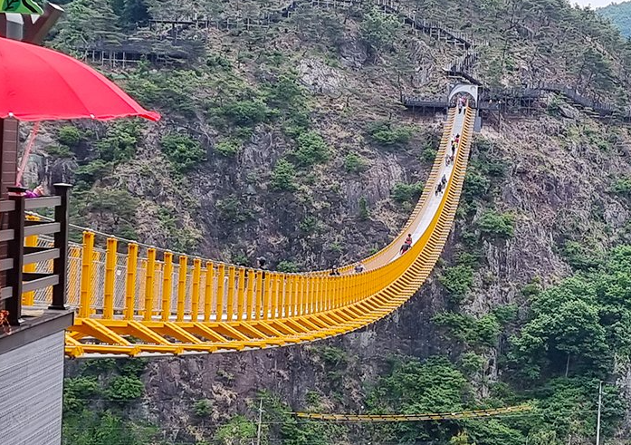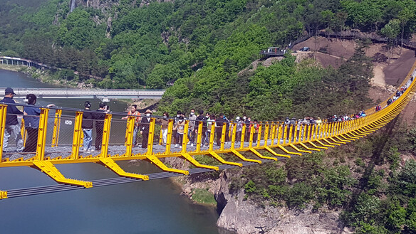 4월 28일 개통한 출렁다리는 지난 12일까지 46일간 20만여 명의 관광객이 다녀가 금산군 대표 관광지로 자리매김하고 있다. 인기를 끌고 있습니다.
