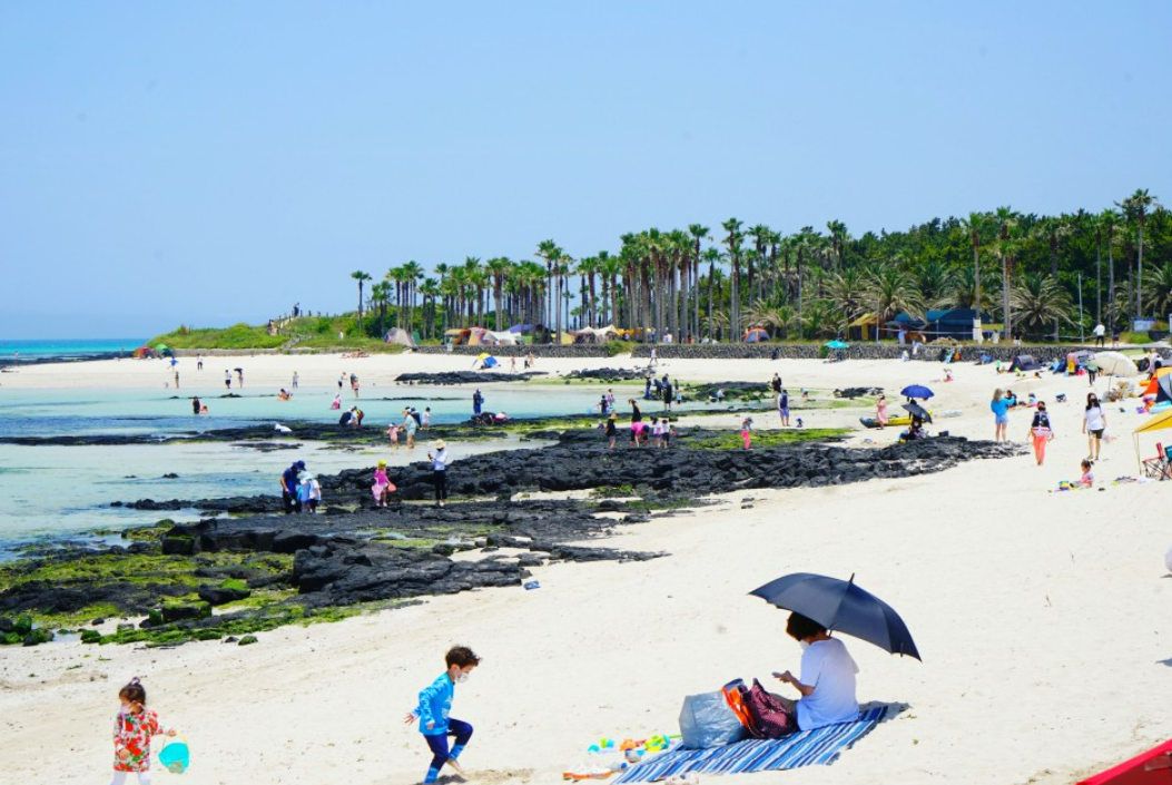 이 해수욕장의 장점이죠! 수심이 얕기 때문에 가족, 아이들과 함께 오기 좋은 제주도 해수욕장입니다.