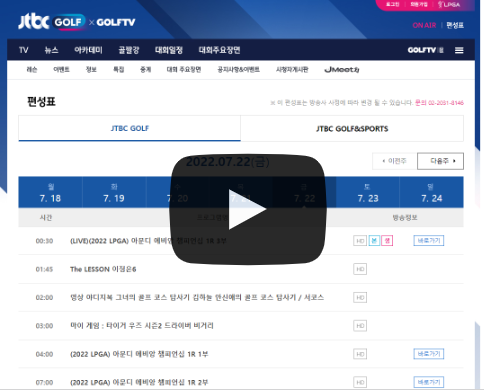 JTBC 골프 편성표는 쉽게 찾아볼 수 있습니다. 하지만 경기이다 보니 편성이 바뀌수 있습니다. 그래서 JTBC 골프 홈페이지 매일 업데이트가 바로바로 되고 보기도 편한 홈페이지 편성표를 보는 것을 추천 드립니다.