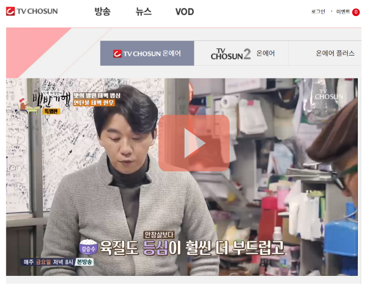 tv조선 1,tv조선 2, 온에어플러스로 여러 채널을 볼 있습니다. 일반화면이라 약간의 화질이 떨어질 수 있습니다. 만약 이거보다 고화질은 즐기고 싶다면 로그인을 하시면 좀 더 고화질로 tv조선 3가지 채널을 실시간으로 즐기실 수 있습니다.