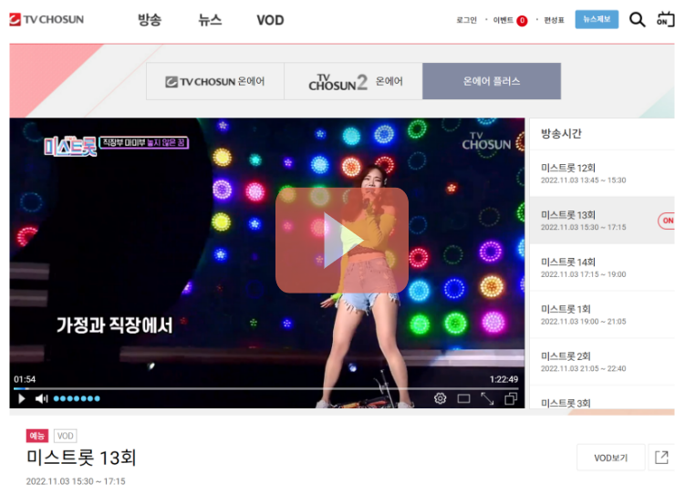tv조선하면 가장 먼저 떠오는 방송은 아마도 미스트롯, 국가가 부른다 등 노래 프로그램이 아닐까? 가수를 지망하고 도전하고 새로운 곡의 재해석 우리는 그런 모습에 희열을 느끼데 된다. 그런 곳을 다시 볼 수 있는 tv조선 온에어 어디서 어떻게 볼까?