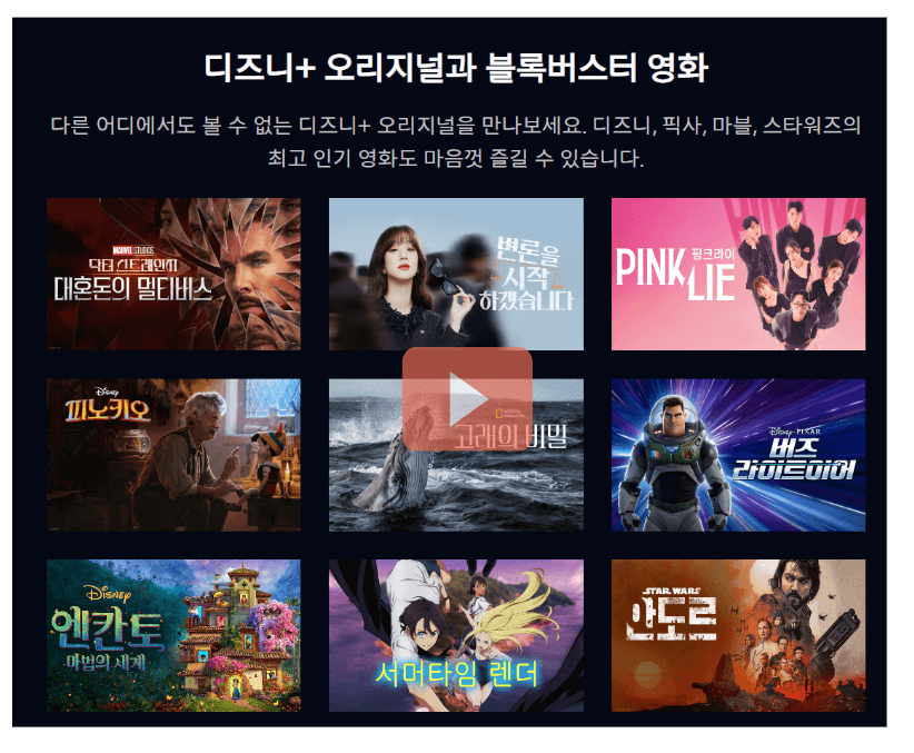 디즈니 플러스 tv 최신 공개작은 물론 시대를 초월하는 명작들이 출시되고 독점 공개하는 새로운 오리지널 영화 시리즈 및 다큐멘터리,리얼리티 시리즈 뿐만 아니라 다수 애니메이션을 볼 수 있는 OTT입니다.