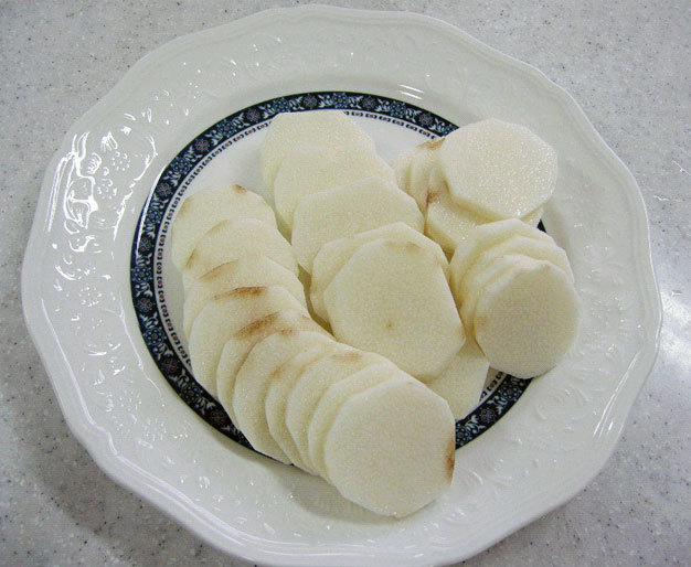 - 마는 껍질을 벗기고 잘게 다집니다.