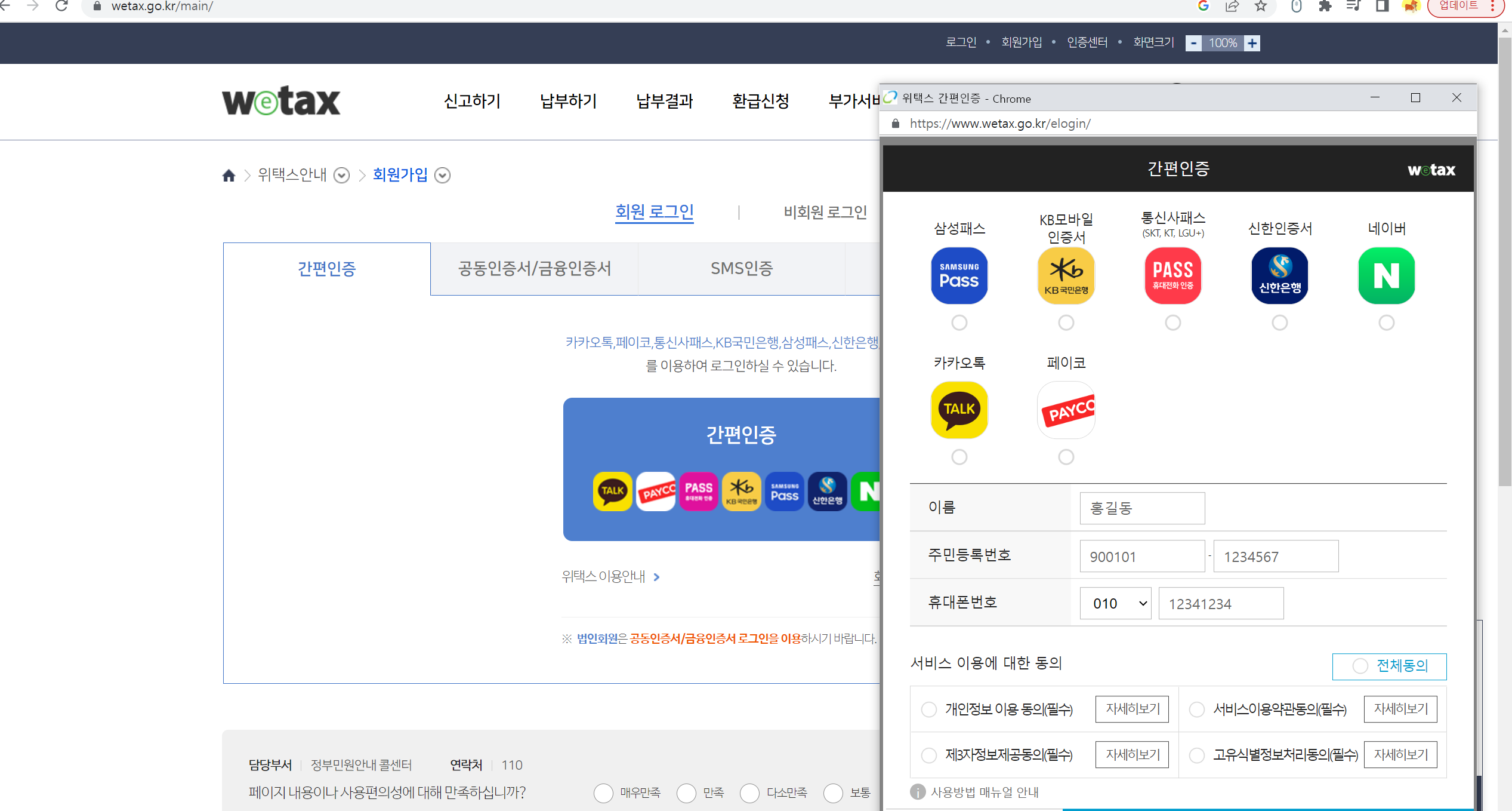 - 간편인증 및 공동인증서를 통해 로그인을 합니다.