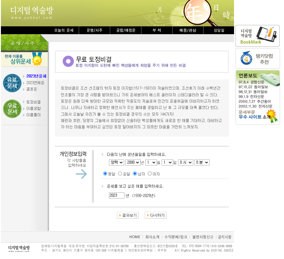 1. 2023년 무료 신년운세 보는 곳 - 디지털 역술방