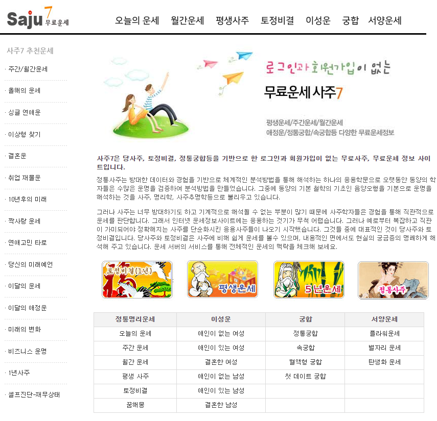 3. 2023년 무료 신년운세 보는 곳 - saju 7