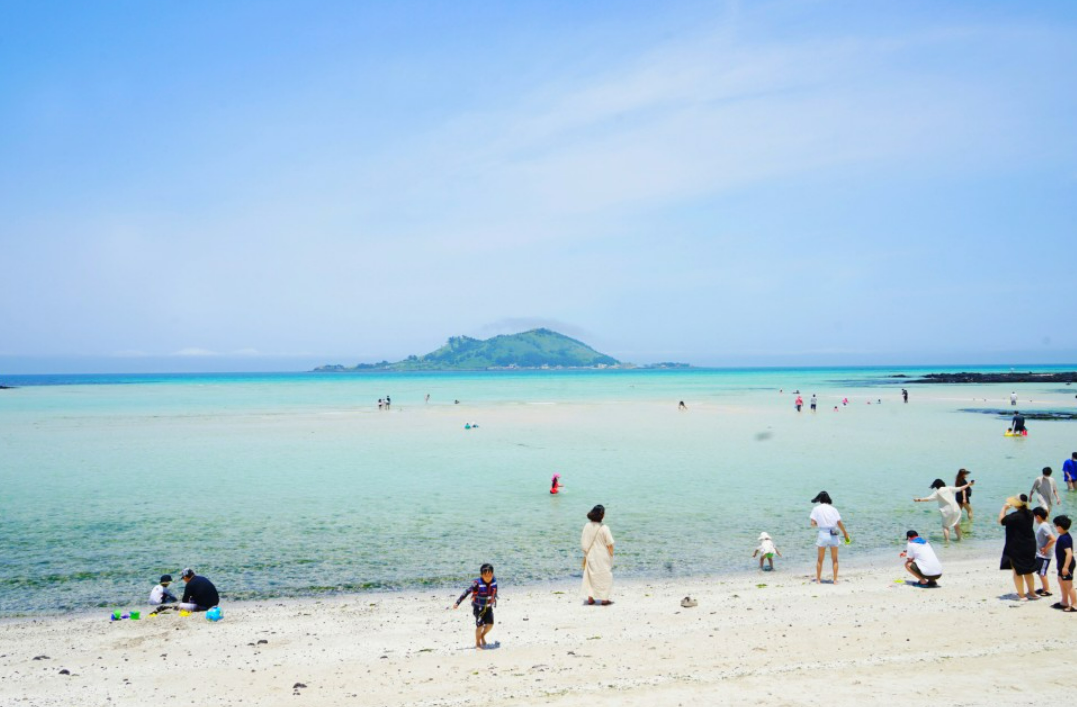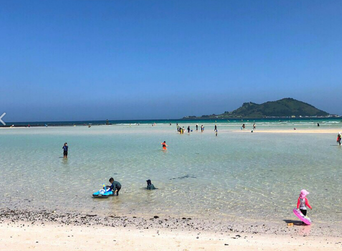 이 해수욕장의 장점이죠! 수심이 얕기 때문에 가족, 아이들과 함께 오기 좋은 제주도 해수욕장입니다.